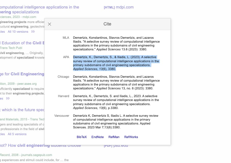 نوشتن منابع در مقاله از طریق گوگل اسکولار