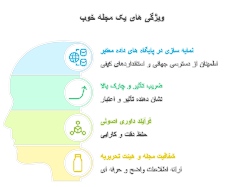 ما سالهاست که به انجام مقاله و چاپ آن در مجلات معتبر مشغول به فعالیت هستیم و به خوبی میدانیم که یک مجله خوب باید چه ویژگی هایی را داشته باشد. اگر یک مجله معیار های زیر را داشته باشد می توان به عنوان یک مجله خوب در نظرش گرفت.